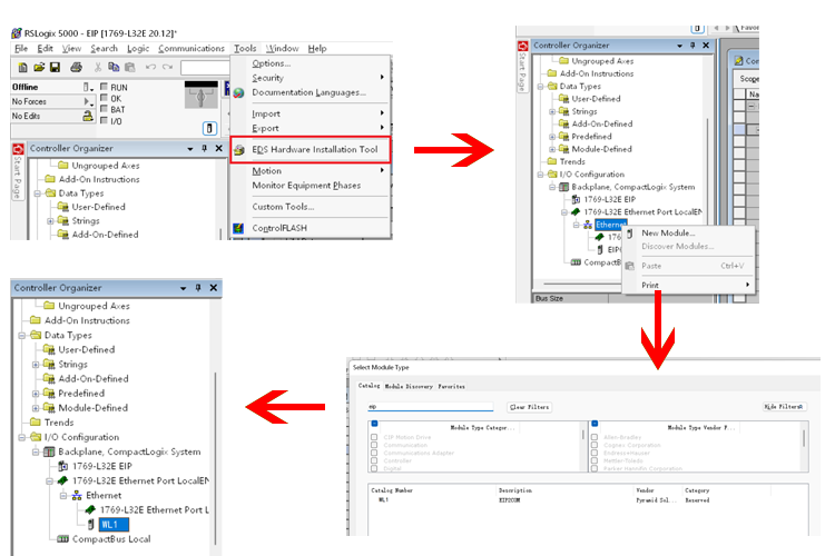 在工业自动化领域,PLC扮演着至关重要的角色。随着技术的不断进步,PLC通讯协议的兼容性变得越来越重要。本文将详细介绍如何通过无锡耐特森Profinet和Ethernet/IP网关,将罗克韦尔PLC的EtherNet/IP接口与西门子S7-1200 PLC的Profinet接口进行连接和配置,从而实现两种通讯协议的互操作性。首先,我们需要准备罗克韦尔PLC以及西门子的PLC、相适应的DC24V电源模块、一台用于配置的电脑、ProfinetEthernet/IP的网关设备以及网络通讯线缆。启动罗克韦尔PLC配置软件,进入硬件配置界面。在此界面中,我们可以导入所需的Profinet和Ethernet/IP网关设备描述文件,这是实现Profinet与Ethernet/IP通讯的关键,完成安装程序后,进行模块化扩展操作。具体步骤包括:选择“新建模块”以添加新模块,然后搜索并选中Profinet转Ethernet/IP的网关模块。进入Profinet和Ethernet/IP网关模块的参数设置界面,通过双击模块名称实现。在此界面中需要配置Profinet和Ethernet/IP网关模块的设备名称及IP地址。点击“更改”以设定数据输入输出的长度。本实例中设置为8字节,这是确保数据通讯稳定的关键参数。最后将配置信息下载到PLC。西门子PLC配置步骤:确保GSD文件已成功安装在系统中。GSD文件是PROFINET设备的描述文件,它包含了设备的配置信息和参数,是实现PLC与PROFINET网络通讯的基础。导入EtherNet/IP转换至PROFINET网关的配置文件进行组态。这一步操作将使得西门子PLC能够识别并正确处理来自网关的数据。设定Profinet和Ethernet/IP网关的IP地址与设备名称。将确保PLC能够准确地将数据发送到正确的目标地址。在执行数据通讯配置的过程中,首先需要设定数据传输的输入与输出长度。这是确保数据完整性和准确性的关键参数。完成设置后,将配置信息下载到PLC中。打开Profinet转Ethernet/IP网关的配置软件,创建一个新项目,并选择PN-EIP作为项目类型。这一步操作将使得网关能够同时处理Profinet和Ethernet/IP两种协议的数据。进一步配置与西门子PLC之间的通讯参数,确保EtherNet/IP转PROFINET网关能在PROFINET网络中正确识别其IP地址和设备名称。数据交换的长度需设置为8字节,以保证数据的完整性和准确性。设定EtherNet/IP转PROFINET网关在罗克韦尔PLC中的IP地址应与系统组态中设定的值保持一致确保PLC能够正确地将数据发送到网关,进而实现与PROFINET网络的通讯。在配置全部完成后,选择EtherNet/IP转PROFINET网关的默认IP端口进行配置信息的下载操作。特别注意,在进行下载时,务必通过Profinet和Ethernet/IP网关设备的底部网口进行操作,以避免可能的配置错误。建议在未插入正面网口的情况下执行下载。完成下载操作并确保EtherNet/IP转PROFINET网关模块成功接收安装文件之后,应重新激活该Profinet和Ethernet/IP网关模块的电源。这一步操作将使得Profinet和Ethernet/IP网关能够正式投入运行,实现EtherNet/IP与PROFINET之间的通讯。通过以上步骤,我们可以成功地将罗克韦尔PLC的EtherNet/IP接口与西门子PLC的PROFINET接口进行连接和配置。这一技术的实现不仅提高了PLC通讯的灵活性和兼容性,还为工业自动化领域的发展带来了更多的可能性。在实际应用中,我们可以根据具体的需求和场景选择合适的PLC和通讯协议组合以满足不同的控制需求。同时随着技术的不断进步和应用场景的不断拓展我们相信未来PLC通讯技术将会更加成熟和多样化为工业自动化领域的发展注入更多的可能。