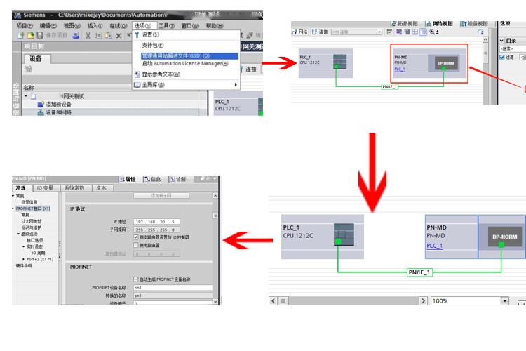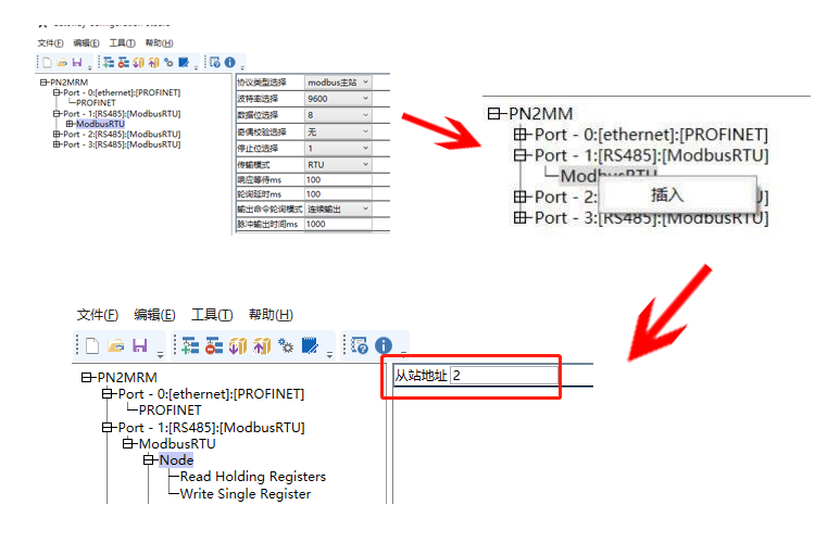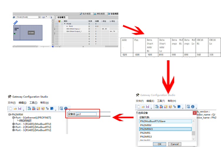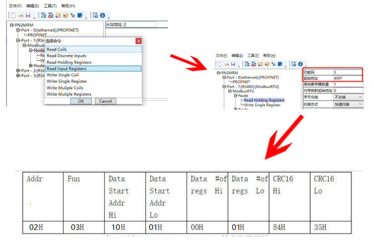 在本次案例中,我们的主要控制对象是汇川的变频器。为了实现这一目的,客户现场选用了西门子的PLC,然而变频器为Modbus协议,两者无法完成直接通讯,所以选择通过无锡耐特森ModbusRS485转Profinet网关模块来实现对变频器数据进行监控。具体设备配置如下:我们采用了汇川变频器,并通过耐特森ModbusRS485转Profinet网关将其接入西门子PLC。以下步骤详细说明了如何配置ModbusRS485转Profinet网关:首先,我们需要将ModbusRS485转Profinet网关的GSD文件拷贝到适当的位置。然后,在博图中创建一个新的项目,命名为“网关测试”,并在设备和网络部分中,选择管理通用站描述文件,随后安装GSD文件。接下来,我们需要在项目中选择ModbusRS485转Profinet网关。我们需要将所选的ModbusRS485转Profinet网关配置到网络中。在Profinet网络中设置ModbusRS485转Profinet网关的设备名称和IP地址。在执行保护器参数配置时,首步是确认所需参数的总数据量。为此,我们在组态中设定了对应的数据长度,具体地,我们已经配置了8个寄存器,每个寄存器包含16个字节的输入和输出信息,共计16个字节的数据容量。在完成组态设置后,我们将其下载到PLC(可编程逻辑控制器)中,以便进行后续操作。从站的通讯应用格式如附图所示,根据该图可以清晰地了解到,从站的功地址为1,能码为03,且需要读取的寄存器数量为1个。这些信息将用于随后的耐特森ModbusRS485转Profinet网关配置。在开始配置ModbusRS485转Profinet网关前,我们需要先打开软件并新建一个项目,选择如参考图所示的配置。配置ModbusRS485转Profinet网关时,必须确保其IP地址与设备名称与组态软件中的设置一致。设置485通讯参数,以确保它与从站的参数一致。在本例中,我们设置为波特率9600,8个数据位,1个停止位,且无需校验。特别需要注意的是,如果存在校验位,那么数据位请选择9。此外,输出命令轮询模式可以根据实际需求选择单次发送,连续发送,脉冲发送等不同方式。在执行Modbus485通信协议的过程中,首先,我们需要在适当的位置插入节点,其地址应被设定为从站地址2,以确保数据的有效传输。接下来需在Node的位置插入功能码,这一步骤是实现特定操作的关键,如读取数据或写入数据等。在进行数据读取或写入时,我们需将手册中提供的范例起始地址1001H转换为十进制,该地址对应于4097。此地址将用于连续读取或写入一个地址的数据信息。内存映射是另一重要概念,它指的是博图中的IQ 地址与内存映射的起始地址之间的对应关系。在本例中,I 地址范围为 68-83。例如,如果寄存器地址是4097,那么这些地址上的数据将会按照顺序被映射到IW68之后的数据上。需要注意的是,当我们完成设备名称和IP的配置,并下载至ModbusRS485转Profinet网关后,需要对设备进行重新上电,以使配置生效。以上步骤均需严格按照规定和顺序执行,以确保数据准确、有效地传输,避免可能出现的误差或故障。