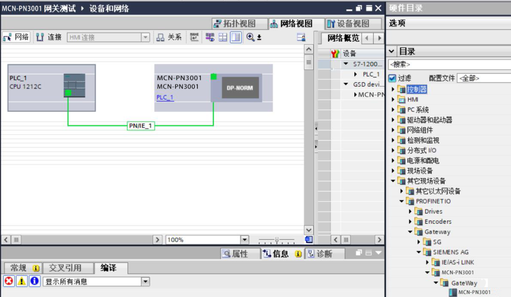 无锡耐特森Modbus转Profinet网关将丹佛斯变频器接入西门子1200PLC配置案例案例简介:本案例是无锡耐特森Modbus转Profinet网关将丹佛斯变频器接入西门子1200PLC,用到的设备为西门子1200PLC一台,Modbus转Profinet网关一个,丹佛斯变频器一台。Modbus转Profinet网关配置方法:打开博图,新建项目并添加GSD文件。建立Profinet连接,设定Modbus转Profinet网关的IP地址和设备名称,IP要和Modbus转Profinet网关保持在同一网段。进入Modbus转Profinet网关设备视图选择输入输出的总数据长度,从右侧硬件目录中添加所选长度,下载配置到PLC,打开无锡耐特森Modbus转Profinet网关配置软件进行modbus参数配置,点击红圈中的新建,选择PN2MM。设置无锡耐特森Modbus转Profinet网关的IP地址和设备名称,要和PLC组态保持一致。设置无锡耐特森Modbus转Profinet网关的485参数波特率,数据位,奇偶校验要和从站要保持一致。响应等待和轮询延时需要根据从站设备调整时间间隔,如果从站回复速度慢则将响应等待时间调大,如果从站回复后要求等待一段时间再接收下条命令,那么需将Modbus转Profinet网关轮询延时调大。在ModbusRTU上右键选择插入,在下级菜单中点击Node填写从站站号。继续右键点击插入,根据不同需求选择所需功能,打开丹佛斯变频器手册,设置变频器485参数。注意变频器的寄存器地址是从1开始,所以填写地址时候要进行偏移。按图中显示3-41地址计算为3410,从上述报文可知,站地址为1使用功能码为03起始地址为0D51换算为10进制为3409数据长度为两个字节(一个寄存器),按图中显示3-41地址计算为3410地址减1后与报文相符。那么无锡耐特森Modbus转Profinet网关配置如下,设置485参数。本例为波特率9600, 8数据位,1停止位,无校验,站地址设为1。用03功能码读取地址3409(注意要填写十进制数)寄存器数量1个字(2字节)。内存映射地址设置为0,表示数据会显示到I68,所以监控IW68会看到该寄存器数据,以此类推。写参数也如此,功能码换成06地址为C359(50009)写入2000HEX。案例总结:以上内容为无锡耐特森Modbus转Profinet网关将丹佛斯变频器接入西门子PLC1200的配置案例。如果有技术问题可以随时留言提问,协助解答。