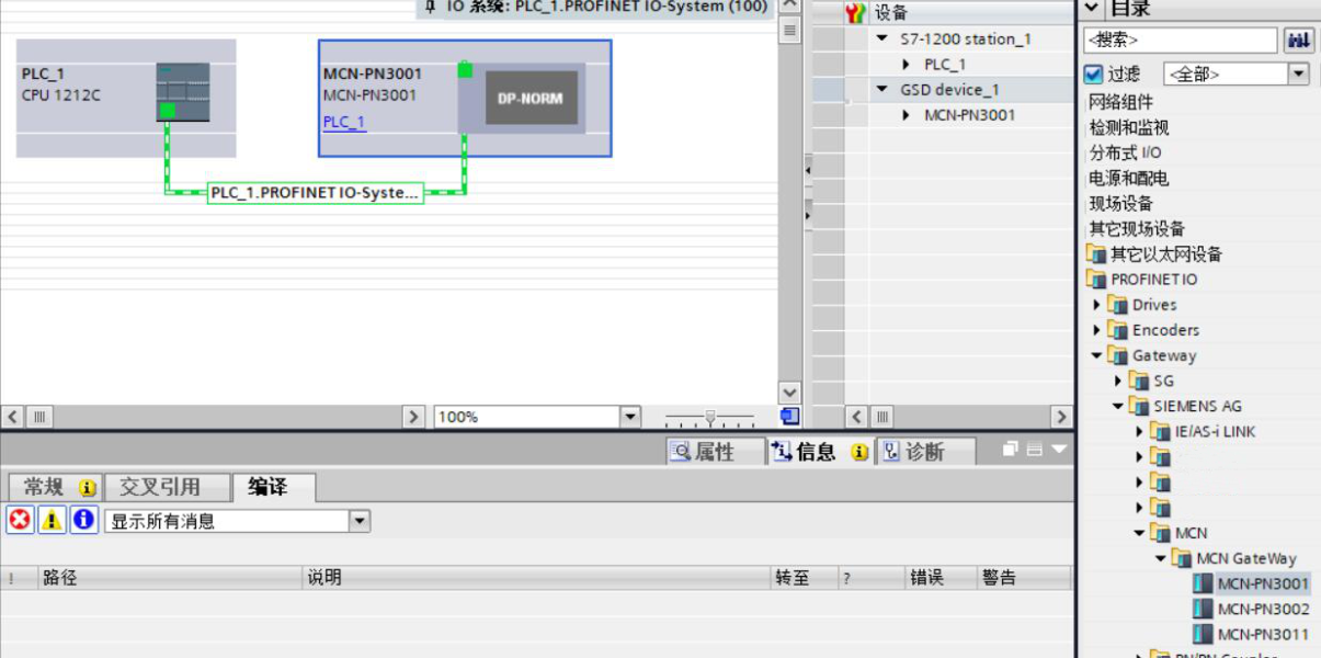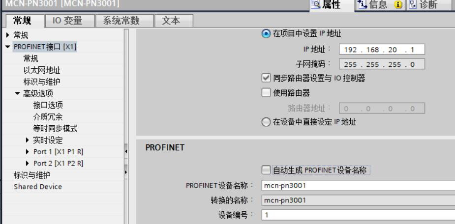 4.设置无锡耐特森Modbus转Profinet网关设备名称和IP地址本例为MCN-PN3001,IP为192.168.20.1.