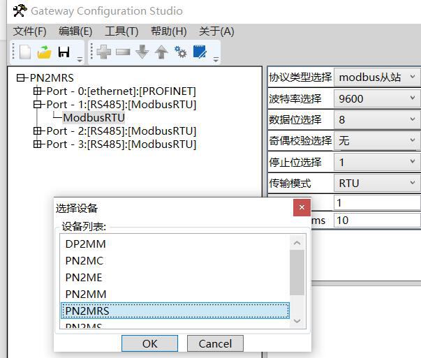 9.设置Modbus转Profinet网关485参数,下载配置到网关,即可使用。