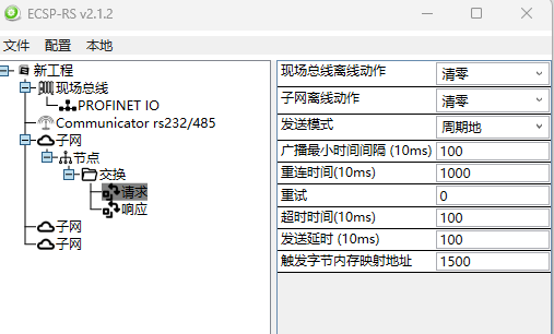 我们在现场需要测试的设备还没有到位,但是提前拿到了RS485转profinet网关。为了确认这个网关的可行性,我们可以使用USB转485模拟从站进行连接。通过将USB转485模拟从站连接到485转profinet网关上可以模拟出一个从站设备,并与网关进行通信。案例简介:本案例是用无锡耐特森RS485转PROFINET网关连接某系列变频器与PLC的配置案例,用到设备为西门子S7-1200PLC,RS485转PROFINET网关以及现场需要的变频器。GSD文件安装完毕后在如下地址找到RS485转profinet网关模块。设置RS485转profinet网关的IP地址和设备名称,ip地址要和PLC同一个网段,给RS485转profinet网关分配输入输出字节长度。下载配置到PLC,设置RS485转profinet网关参数,打开RS485转profinet网关配置软件,首先设置PN端的IP地址和设备名称,需和博图配置保持一致。设定串口参数,选择485接口,工作模式可选择主从模式或消费者生产者模式,此处以主从模式为例,本案例选择主从模式。根据设备说明书设置RS485转profinet网关每个端口的串口参数。在消费者处右键添加需要的数据格式,根据手册数据格式,添加相应的数据长度,这里以16字节为例。第二个子网也照此设置,不过内存映射地址要从16开始下载配置,即可在相应I地址读取到信息发送模式:在生产者和消费者模式下发送选择生产者。同样超时离线动作可以选择清零和保持。发送模式分为周期发送;数据改变发送;启动后发送一次和触发数据改变。1.周期发送:按下方发送延时设定的时间间隔发送,以10ms为基数填入数据乘以10ms即为间隔时间。数据改变发送:当PLC的Q地址任何一位的数据发生改变则对下位机进行数据发送,之后停止发送等待下次数据改变再进行下次发送。2.启动后发送一次:RS485转profinet网关上电后发送一次数据,发送时间同周期模式一样受发送延时影响,发送之后停止。3.触发数据改变:对于指定位置的数据改变后进行发送的模式触发位置数据每边一次进行就一次发送,发送的数据可以包含或者不包含出发数据本身。综上所述,RS485转Profinet网关在混料配料输送系统中的应用是非常重要的。这种应用案例在工业自动化领域具有广泛的应用前景和实际价值。