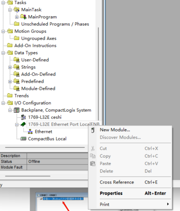 本案例是客户现场有多个气体探测仪,但是无法直接接入罗克韦尔系统中,因为气体探测仪是标准的ModbusRTU协议,需要配置的数据要通过Modbus转EtherNET/IP网关来实现和PLC的Ethernet网络进行通讯。使用设备为PLC、Modbus转EtherNET/IP网关、Modbus从站为气体探测仪。项目中通讯配置方法:打开PLC的配置软件进行新建项目并且添加需要的站点,然后添加PLC。提前使用软件设置好PLC的IP地址并将设备设置为联网状态。导入Modbus转EtherNET/IP网关的eds文件。点击Borwse选择eds文件所在位置,在Ethernet Prot处右键选择New Module添加Modbus转EtherNET/IP网关模块。输入EIP搜索查找选择EIP001,设置Modbus转EtherNET/IP网关名称及IP地址。点击Change设置输入输出长度。完成以上步骤PLC端配置已设置完成,下载至PLC即可。打开Modbus转EtherNET/IP网关软件设置网关连接Modbus从站设备,进行从站的相关参数进行配置。设置ModbusRTU的485参数,要和气体探测仪保持一致。注意:响应等待代表等待从站响应的最长等待时间。轮询延时代表从站响应后间隔多久再发送下一条命令。选择对应的功能码填写好寄存器地址及数量即可,多条命令配置后点击自动计算映射地址,数据将自动对应到对应的IQ地址。按手册对应参数名称即可,很多客户现场都会发生一些设备和控制层系统协议不一样的情况发生,上述案例就是通过Modbus转EtherNET/IP网关实现通讯.