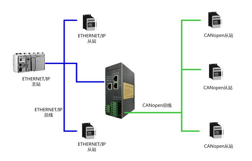 MCN-EICO 是自主研发的一款 ETHERNET/IP 从站功能的通讯网关。该产品主要功能是将各种 CANOPEN 设备接入到 ETHERNET/IP 网络中。本网关连接到 ETHERNET/IP 总线中做为从站使用,连接到 CANOPEN 总线中做为主站使用。
