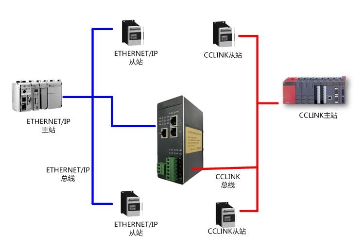 MCN-EICI 是自主研发的一款 ETHERNET/IP 从站功能的通讯网关。该产品主要功能是实现 CCLINK IEFB 总线和 ETHERNET/IP 网络的数据互通。 本网关连接到 ETHERNET/IP 总线中做为从站使用,连接到 CCLINK IEFB 总线中做为从站使用。