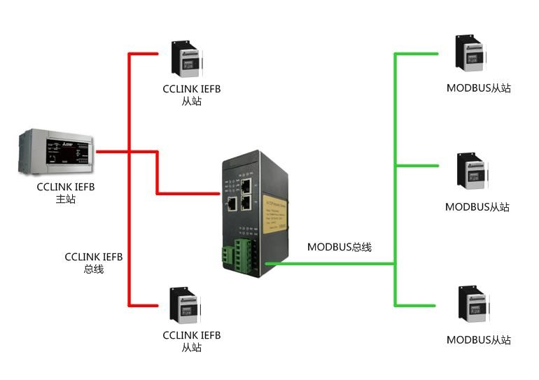 ● 网关做为 CCLINK IE FIELD BASIC 网络的从站,可以连接三菱的 PLC。
